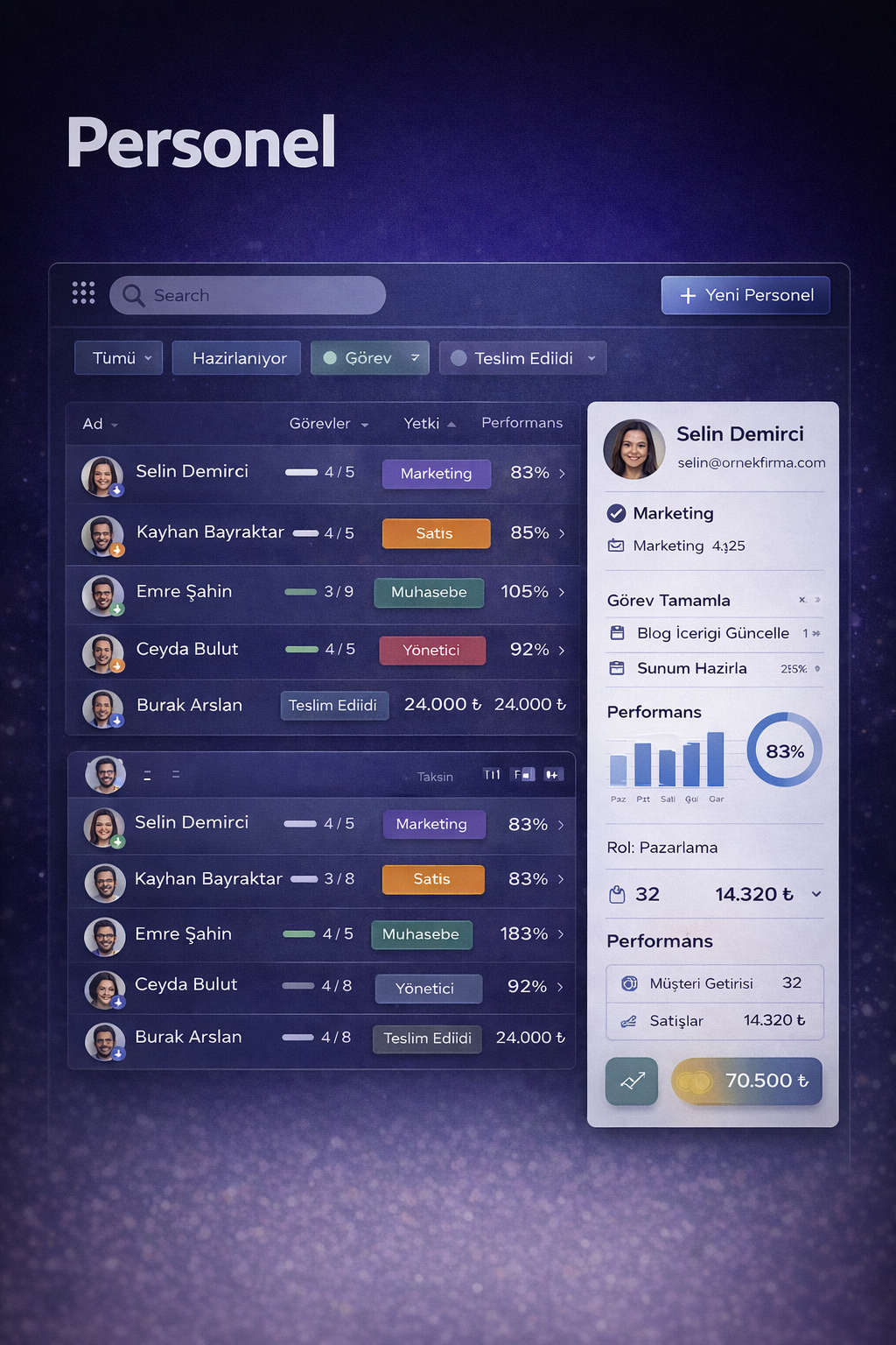 Detaylı İncele →Rol bazlı erişim ve firma bazlı veri izolasyonu.