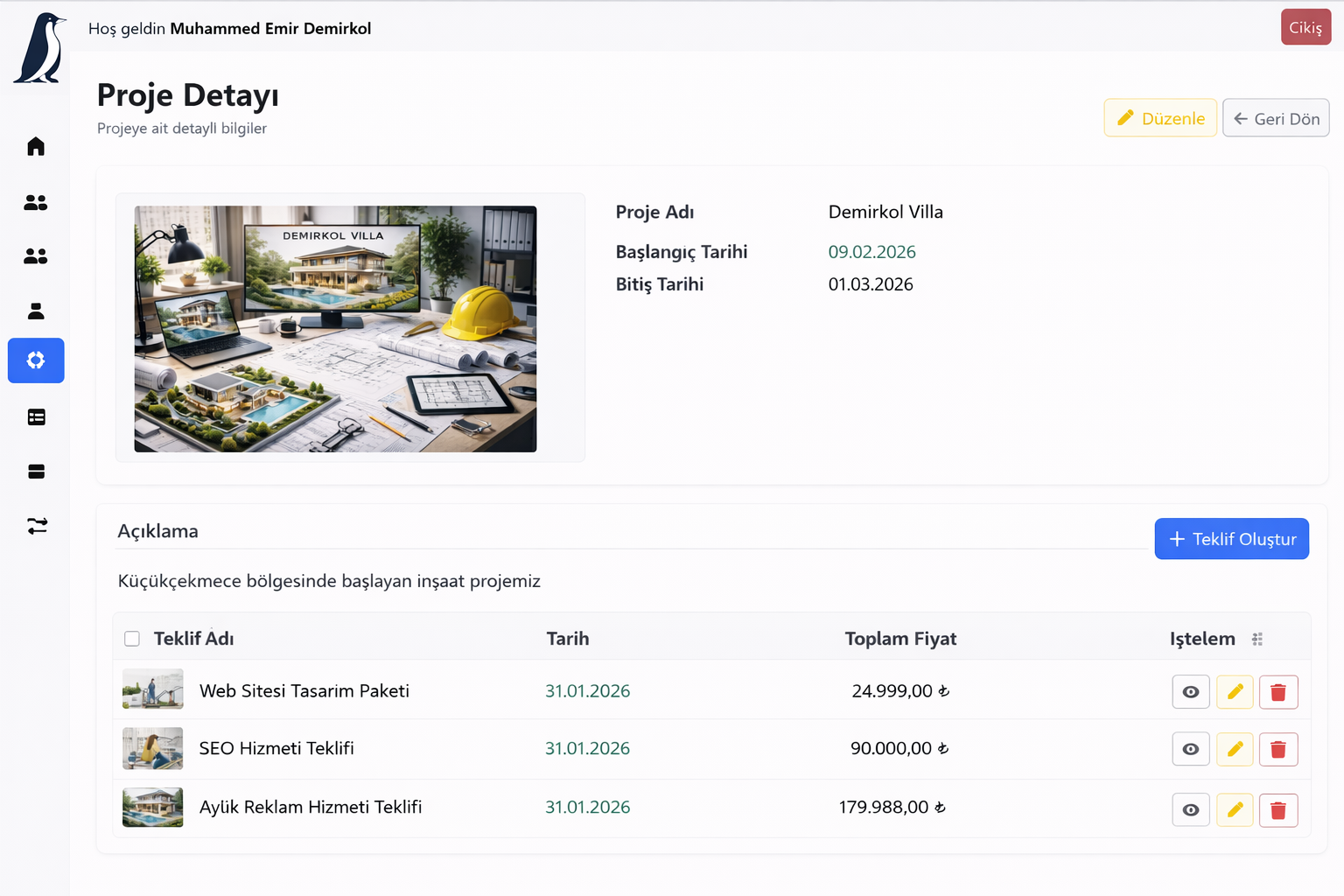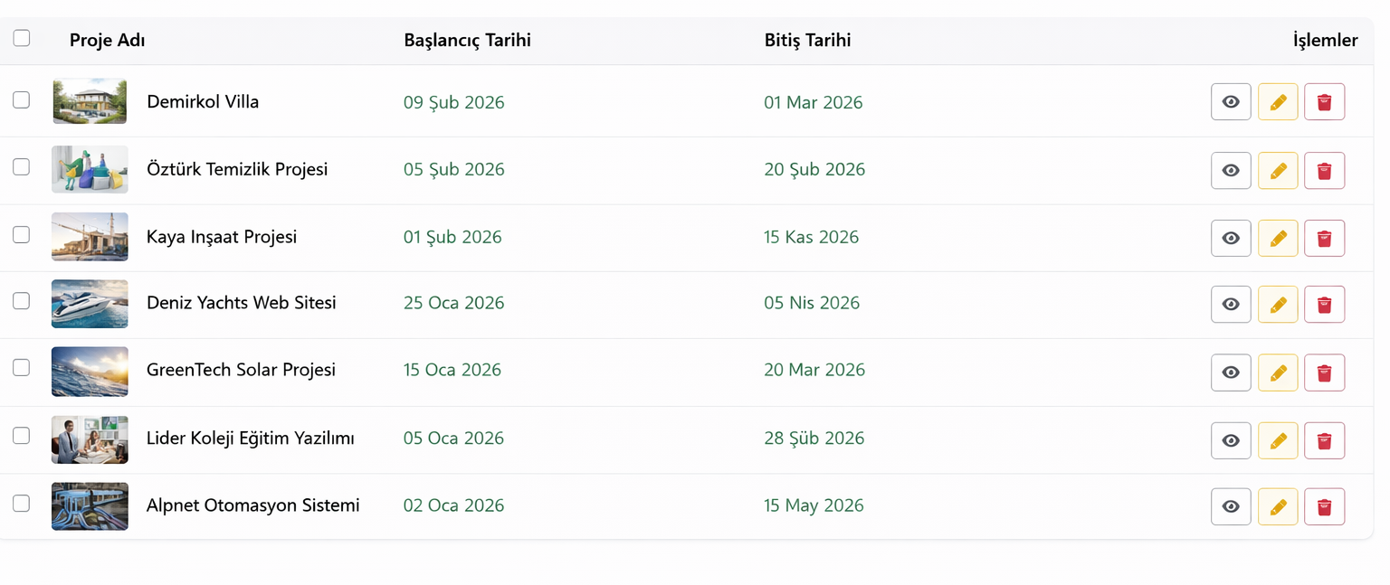 Projeleri oluşturun, görev atayın, ekipleri yönetin ve süreci baştan sona izleyin. Kaos değil, sistem kurun.