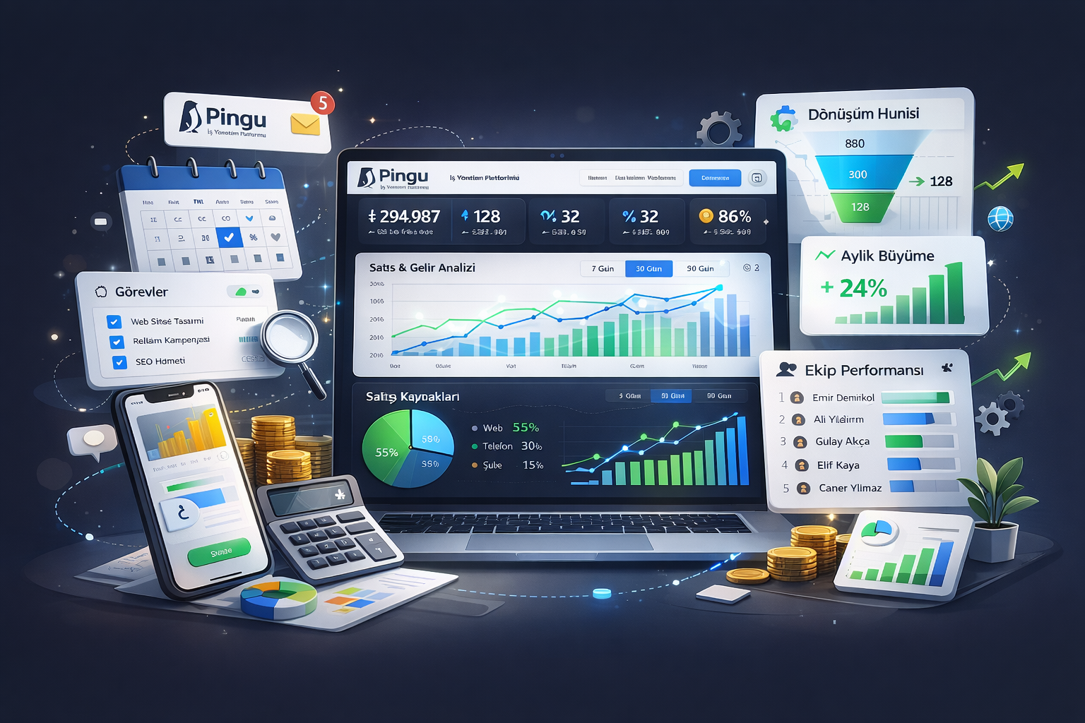 Pingu, tüm modüller arasında veri akışını otomatik olarak sağlar. Satıştan operasyona kadar her hareket raporlara anında yansır.