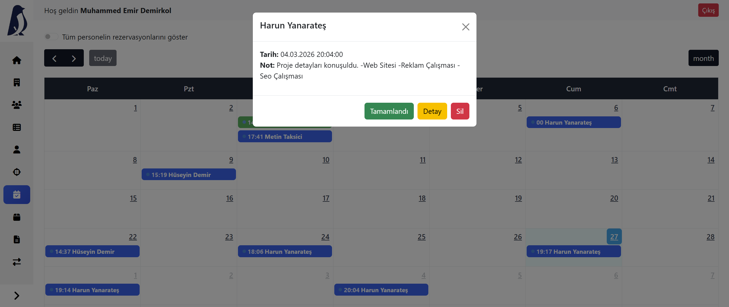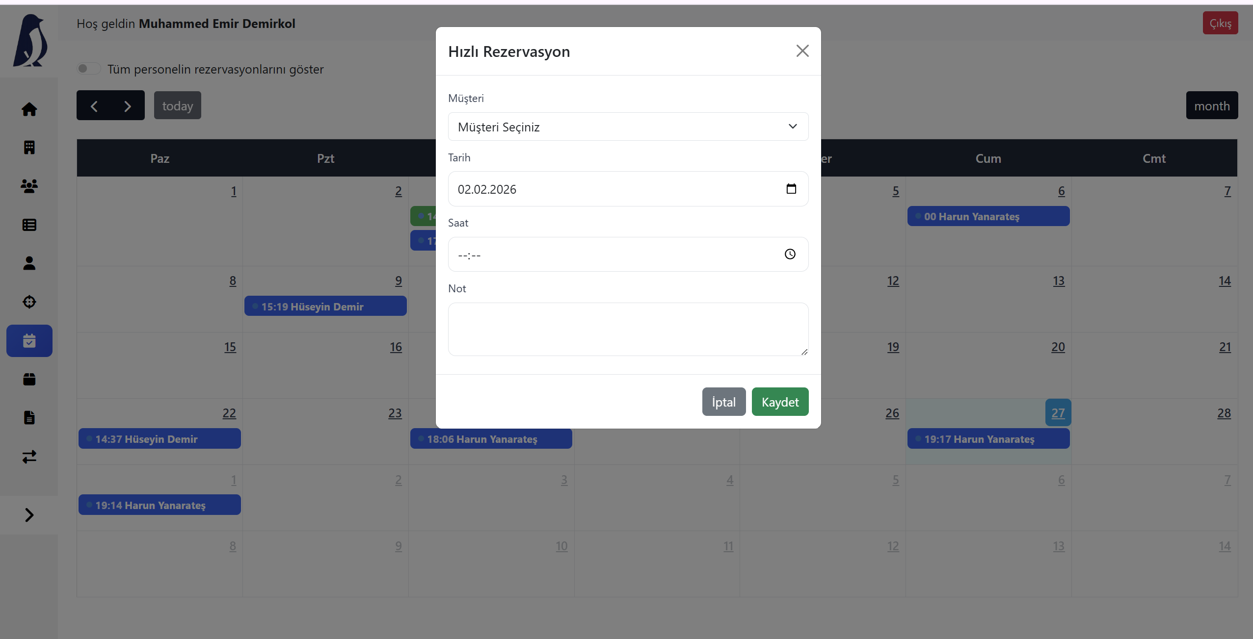 Rezervasyon oluşturun, ekip atayın, saat çakışmalarını önleyin ve tüm planlamayı tek panelden yönetin. Kağıt ajandaya veda edin.