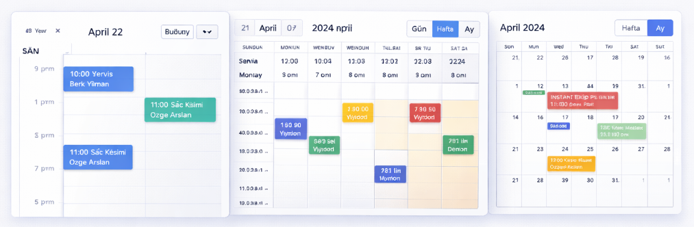 Tüm rezervasyonlarınızı takvim üzerinde görün. Çakışmaları otomatik tespit edin.