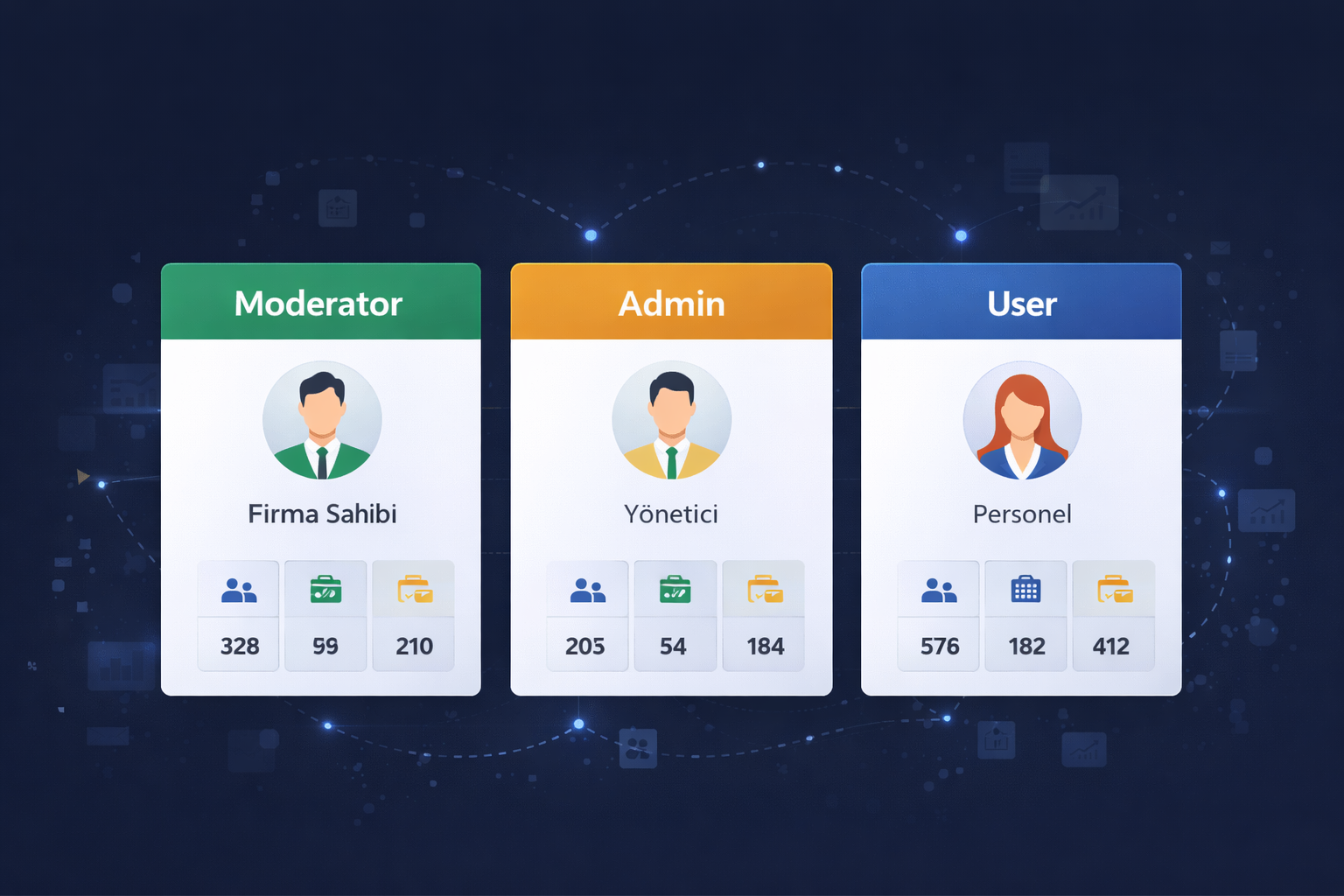 Firma sahipleri, yöneticiler ve personel için rol bazlı yetkilendirme sistemi. Birden fazla firmayı tek panelden yönetin. Güvenliği kontrol altına alın.