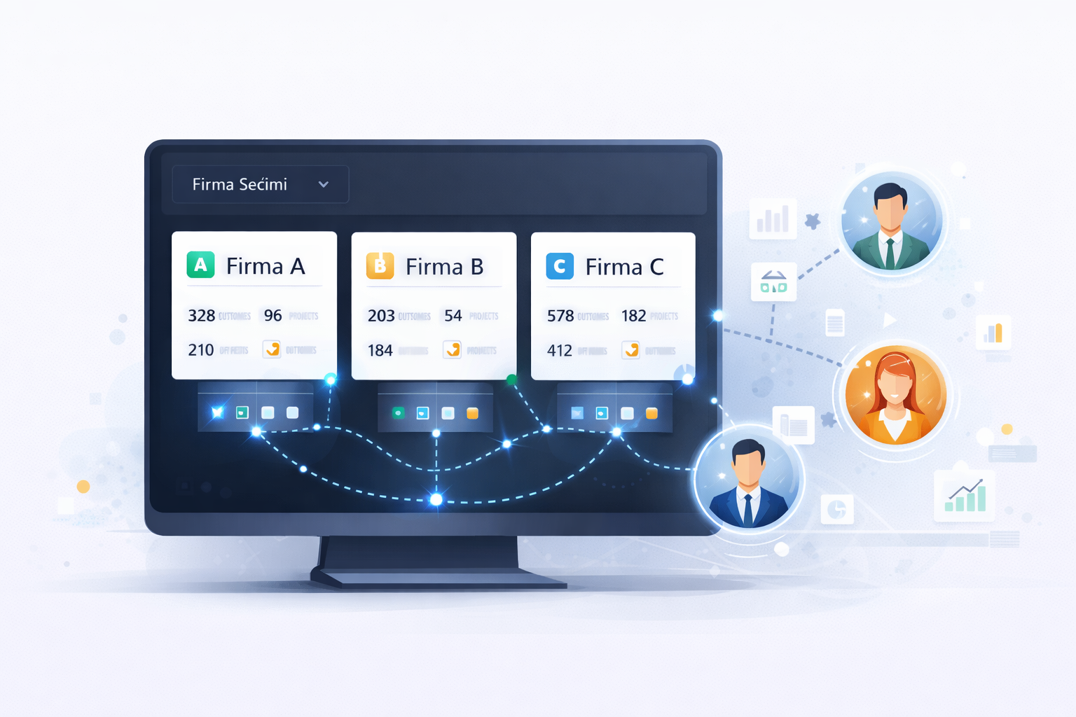 Ajanslar, holding yapıları veya birden fazla şubesi olan işletmeler için çoklu firma altyapısı.